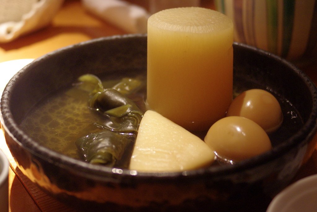 Oden, a quintessential Japanese comfort food, presents a complex flavor profile that is both subtle and profound. At the heart of this dish lies the dashi broth, which serves as its foundation. Traditionally made from kombu (dried kelp) and katsuobushi (dried bonito flakes), the dashi lends a savory umami essence that permeates the various ingredients simmered within it. This broth is refreshingly delicate, allowing the inherent flavors of each item to shine while contributing to a collective harmony.